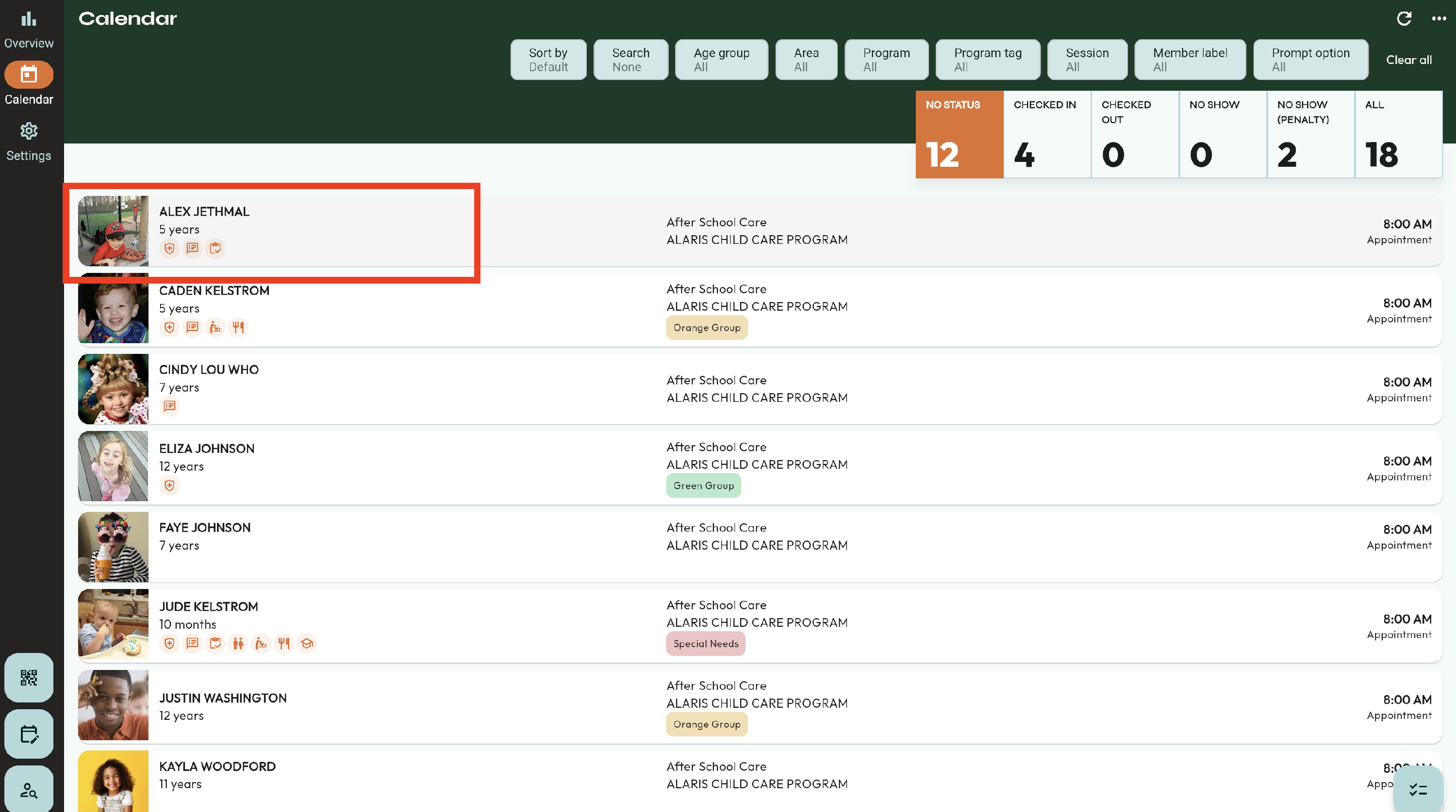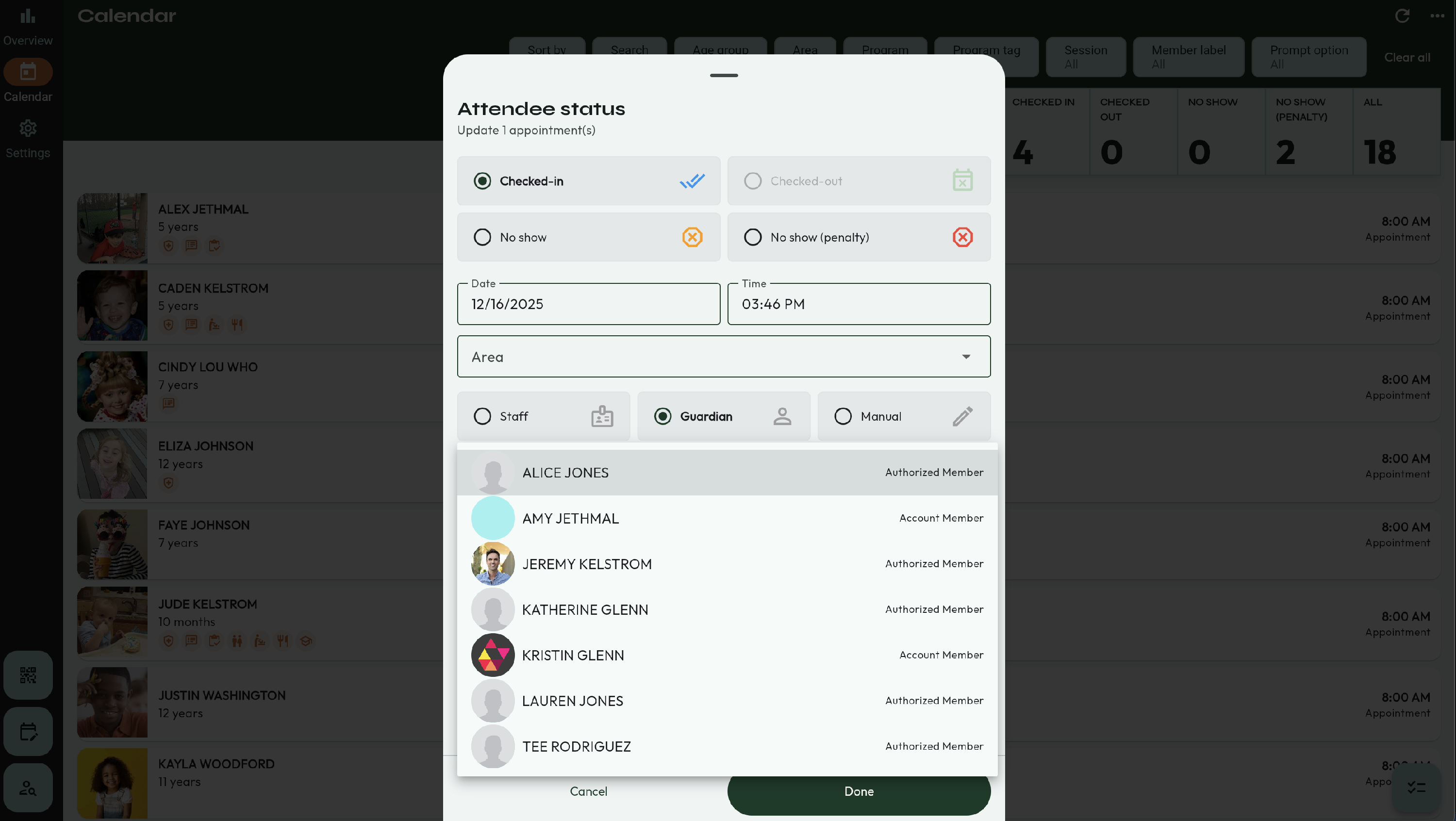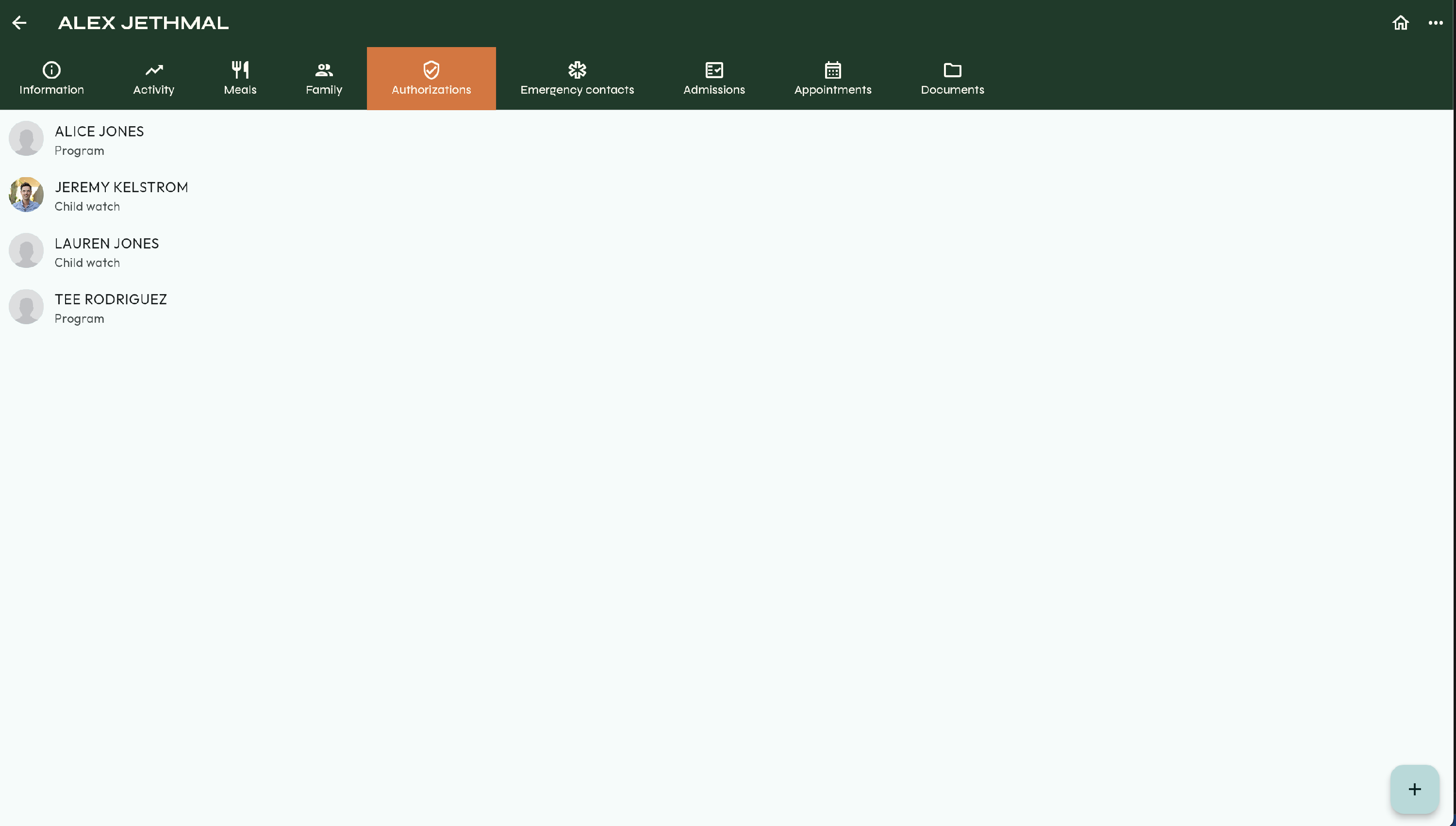 - First, verify the Authorized users for the child that is being picked up. This can be viewed by selecting the child.