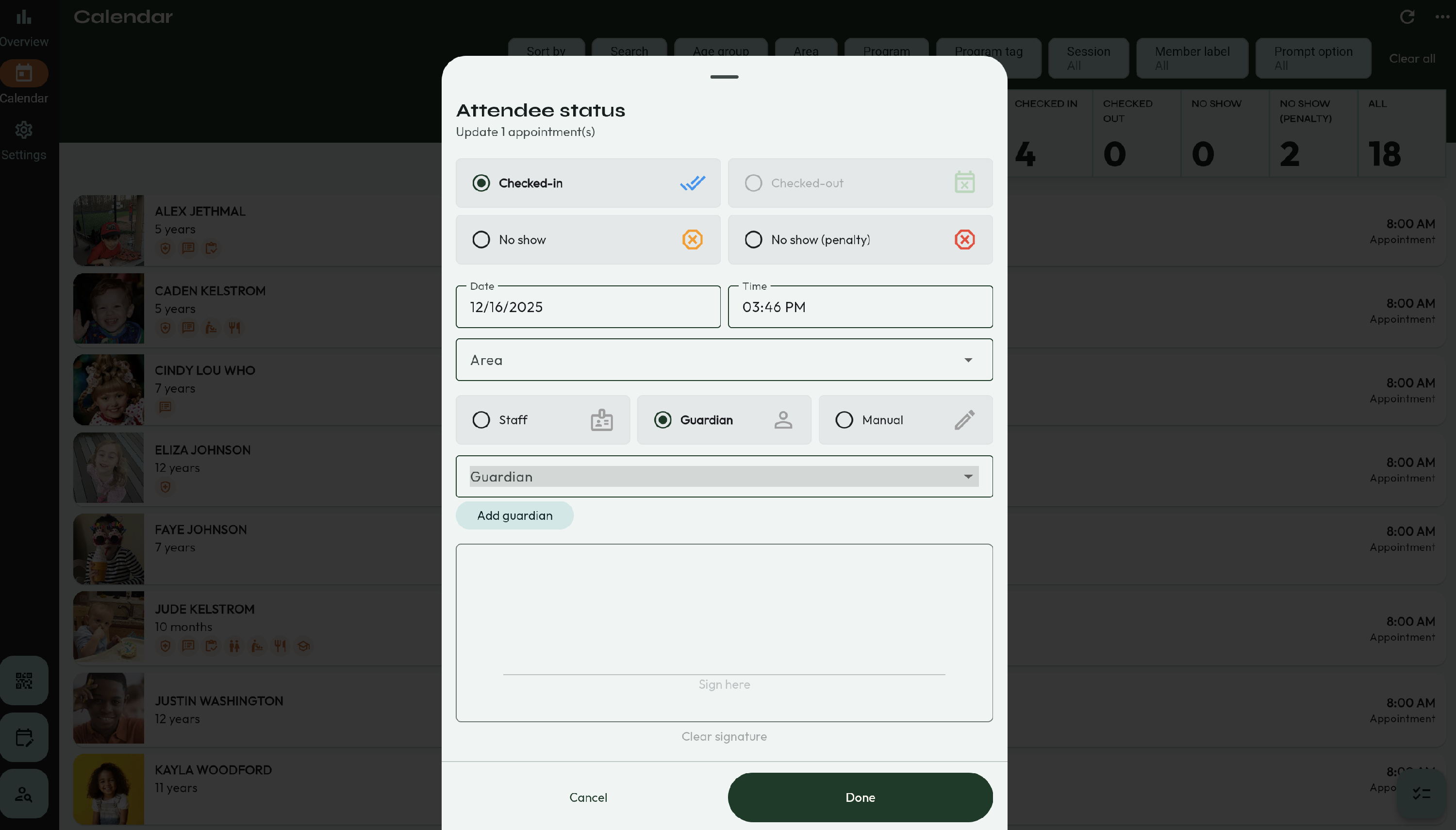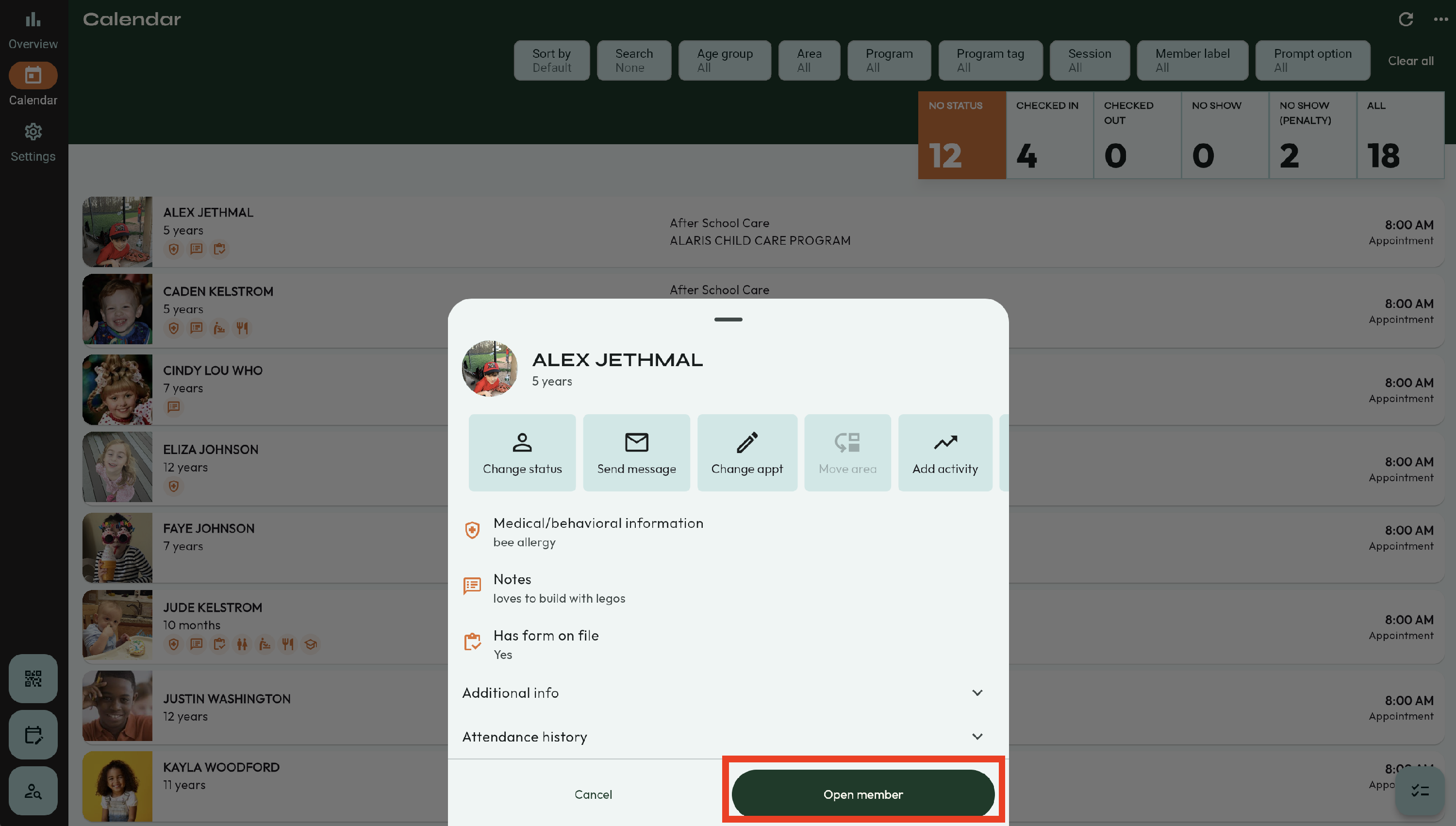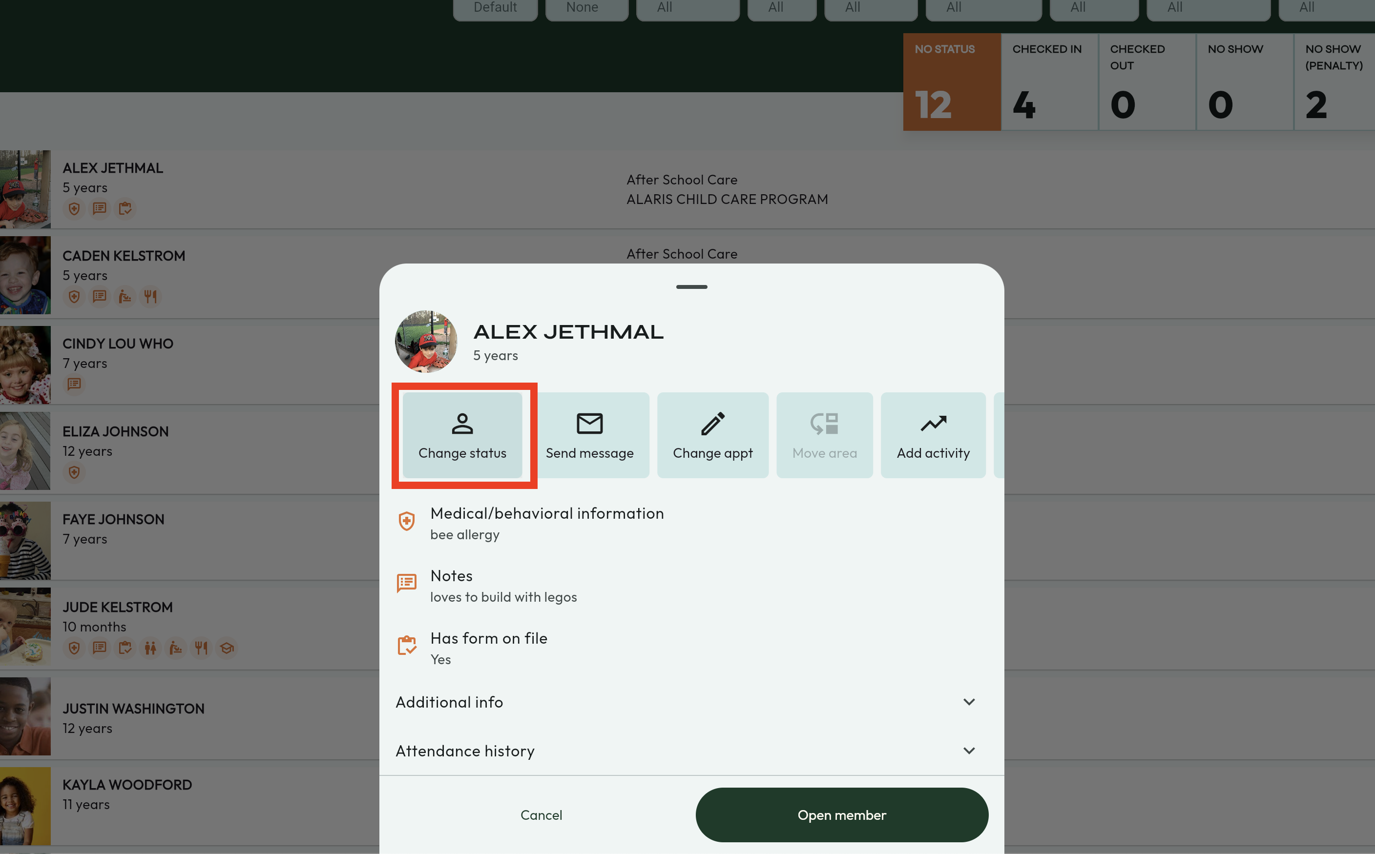 - First, verify the Authorized users for the child that is being picked up. This can be viewed by selecting the child.