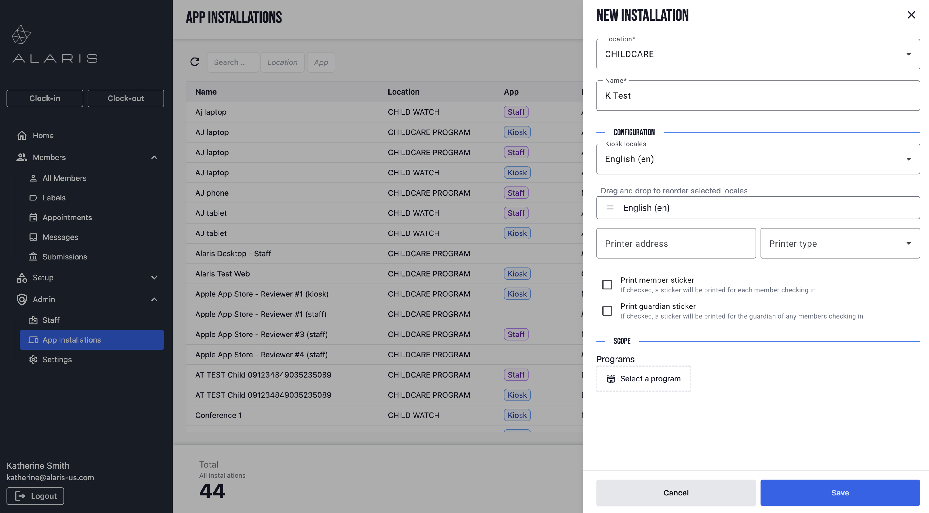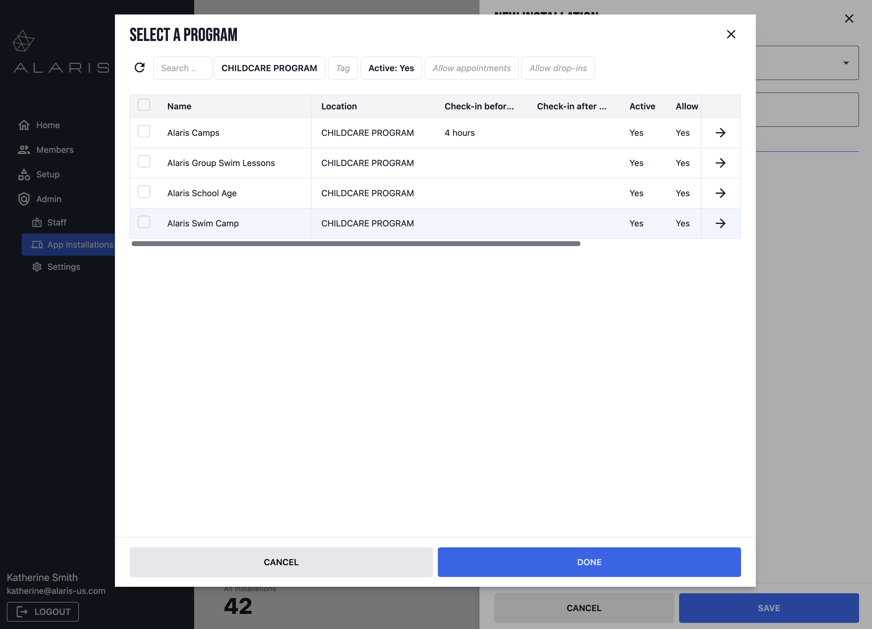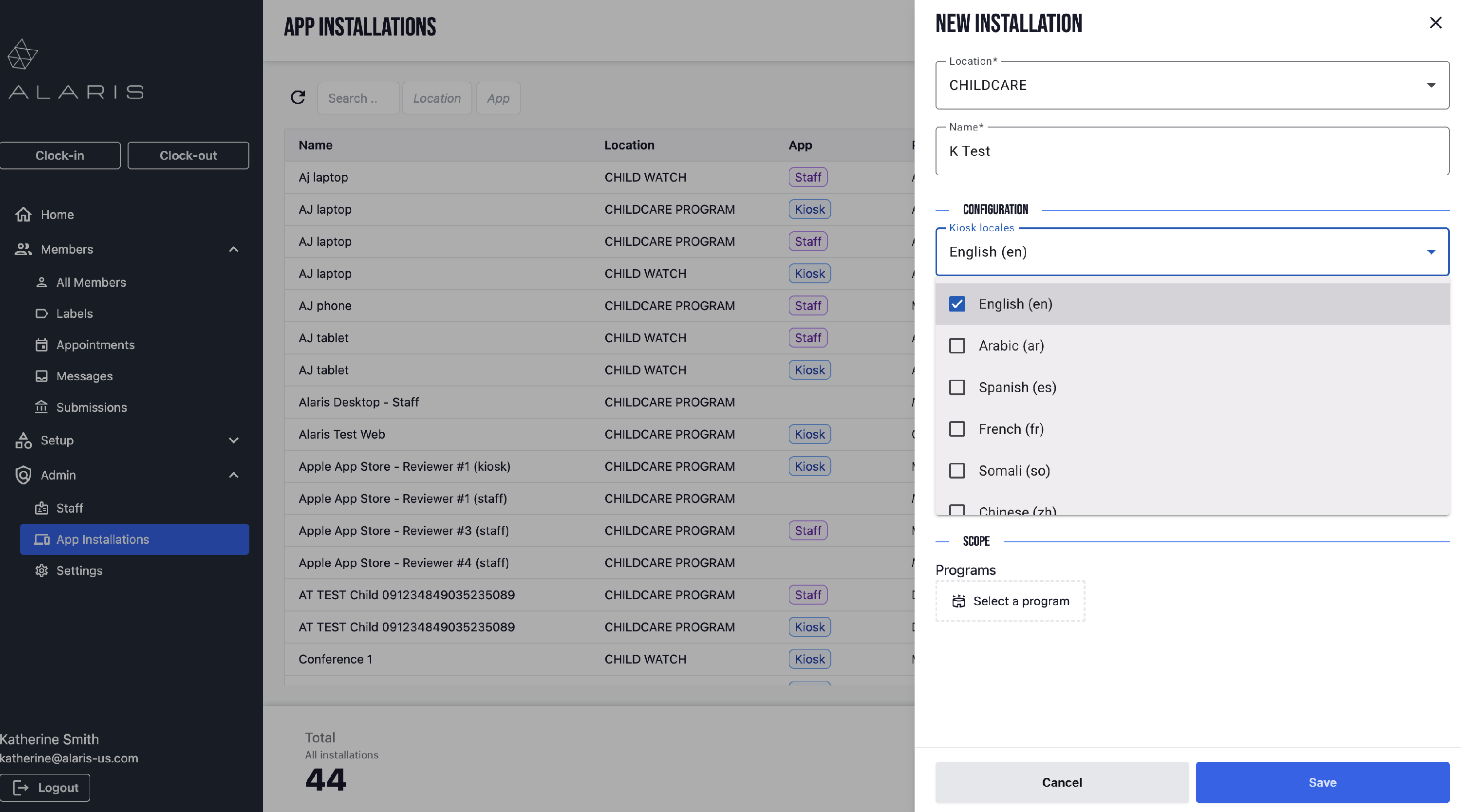 - Next, you will open the Alaris Staff Web App and login. Then, under Admin, select App Installations.