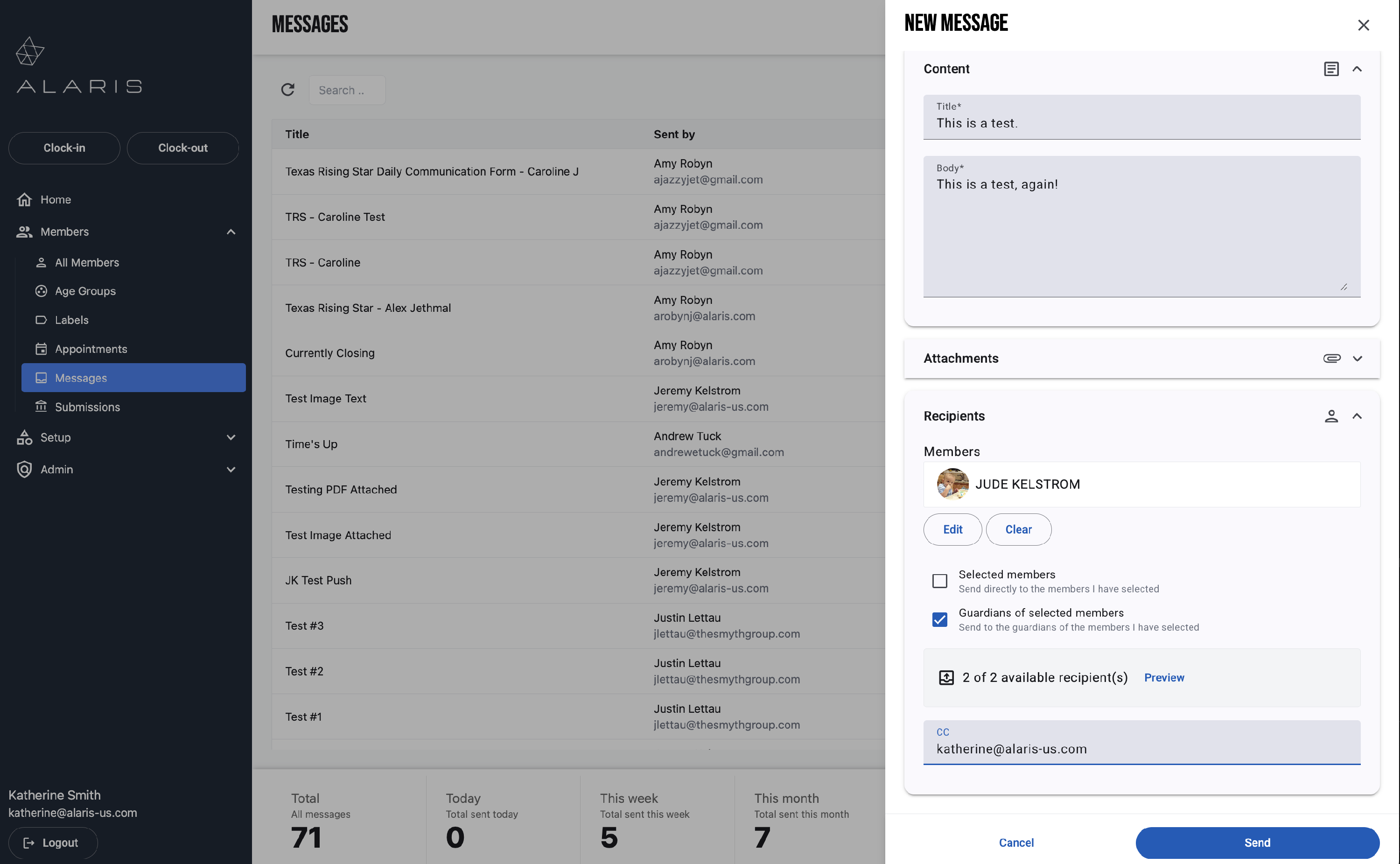 - Next, select the recipients of the message. You can select either the Selected Member or Guardians of Selected Members.