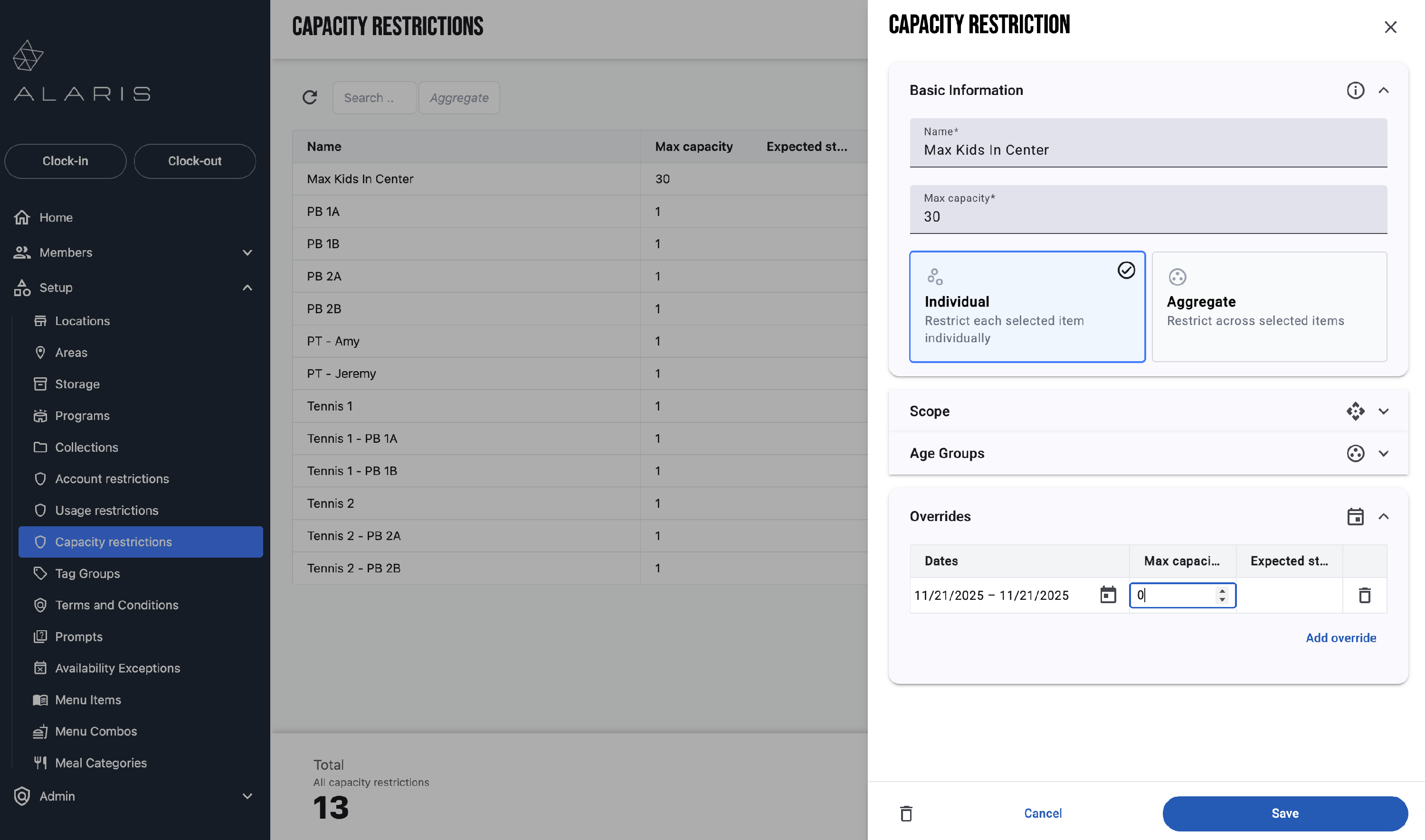 - Select Setup on the left. Then, select Capacity Restrictions.