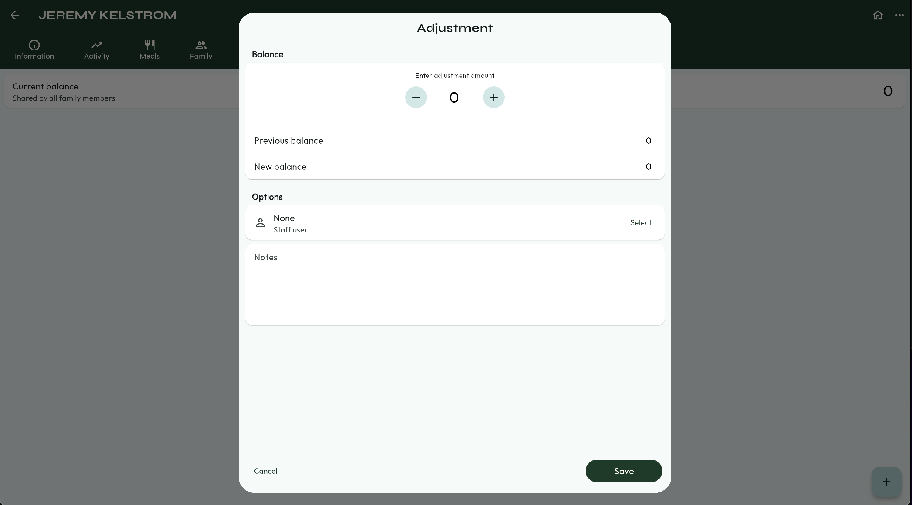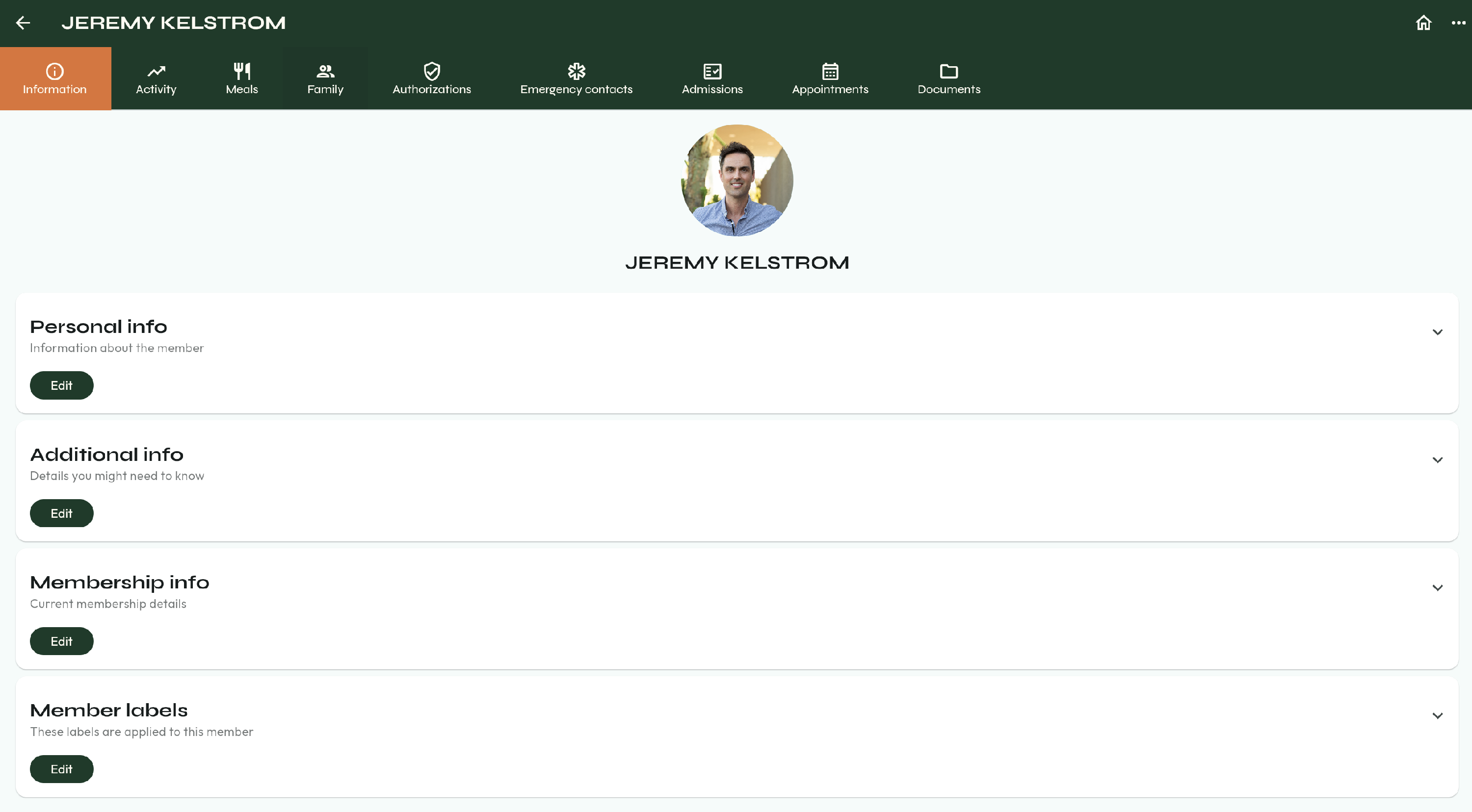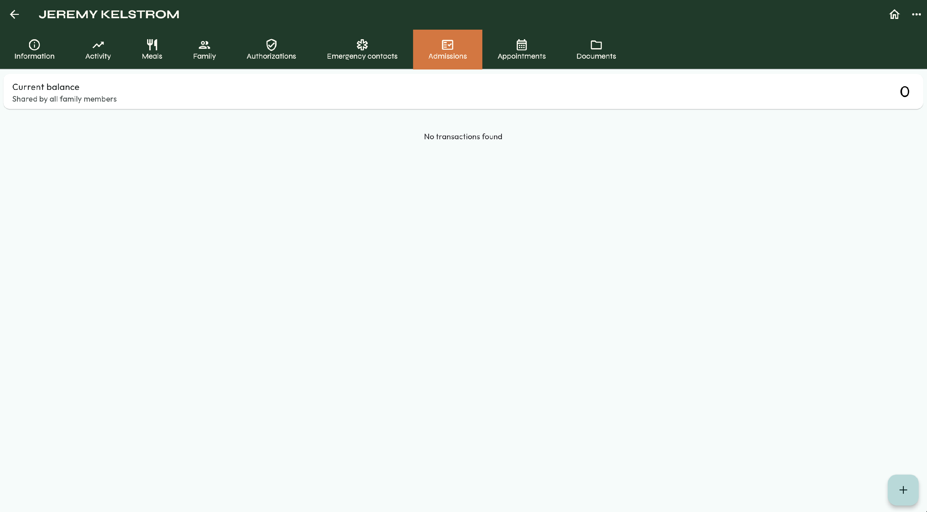 - Next, you will search for a family member whose Admissions information you want to view. (Admissions for the entire family can be viewed under any family member.)