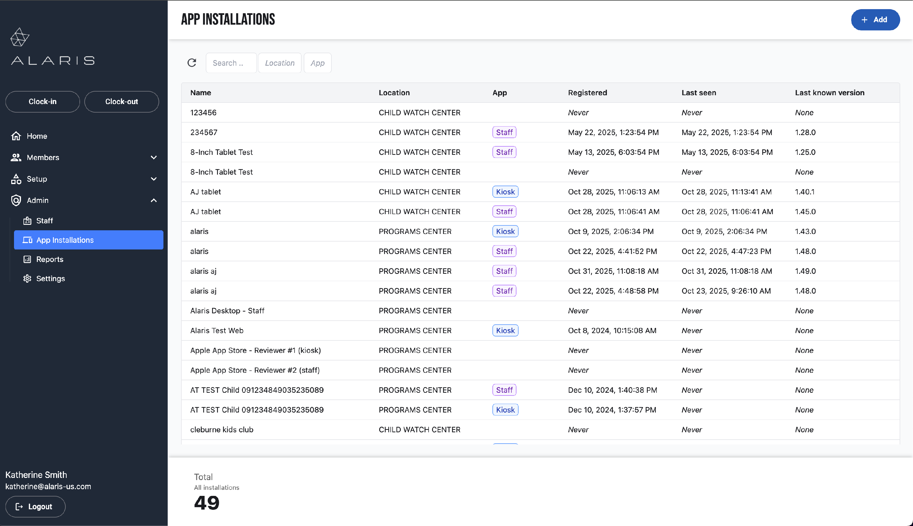- Select Admin in the table to the left. Then, from the drop down, select App Installations.