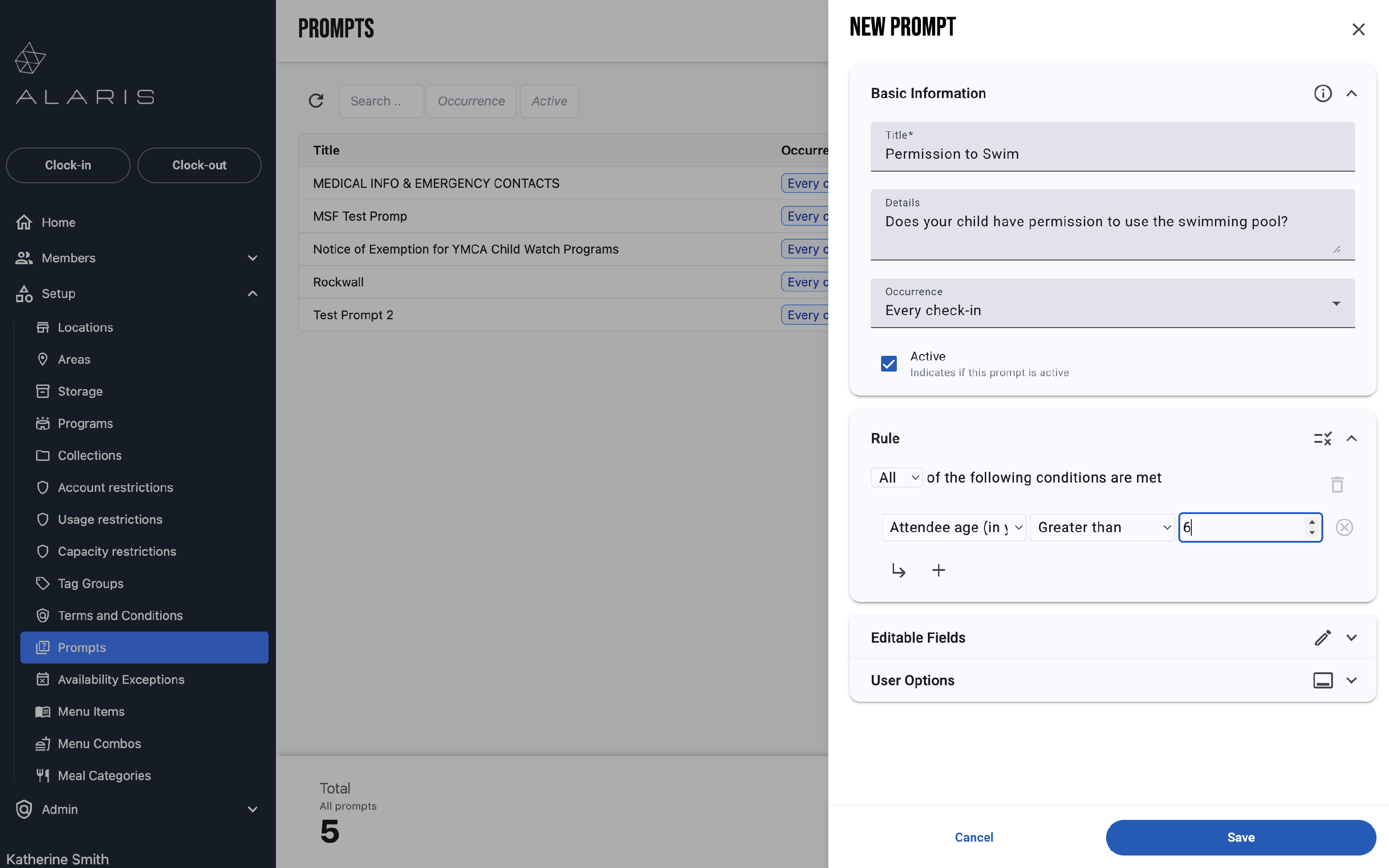 - Now, this prompt will only appear when parents are checking in children over the age of 6 years old. These rules are extremely customizable, and can be built to your specific needs.