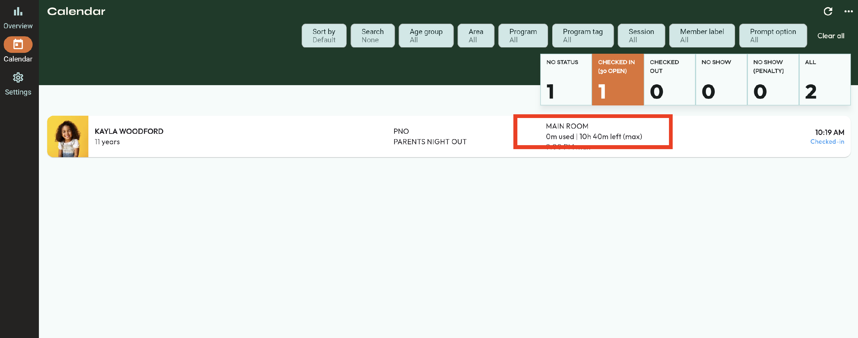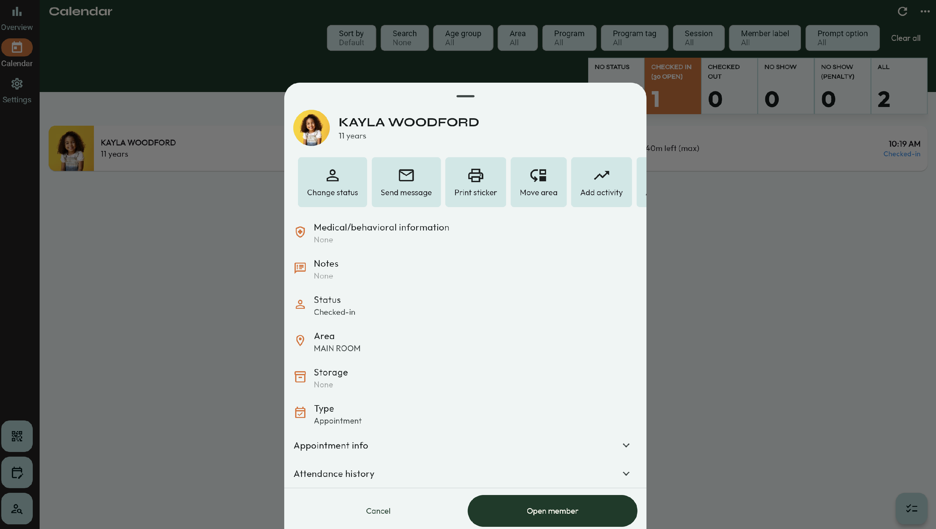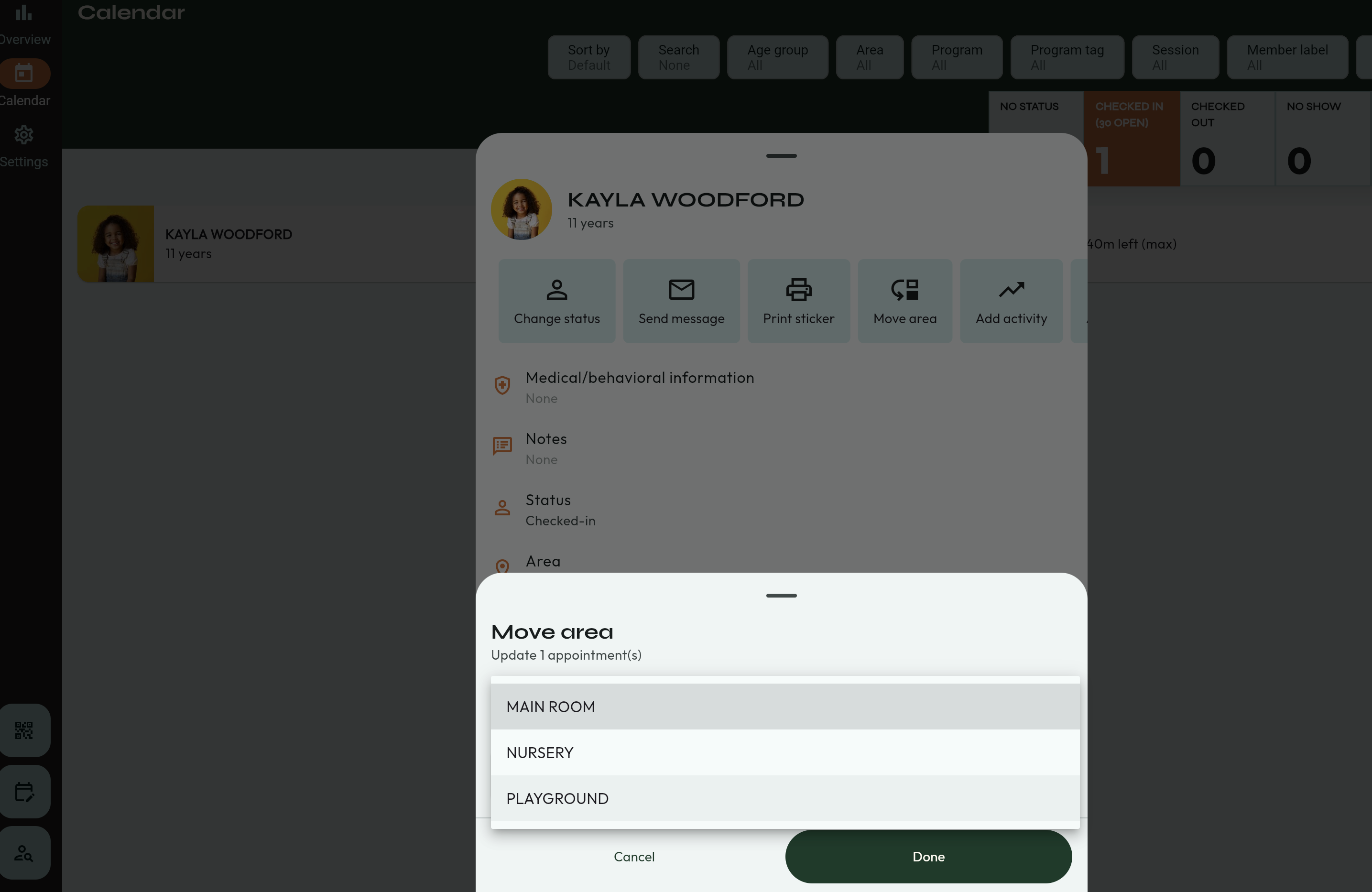 - Find the child who you want to move to a different area. To the right, you can see the area they are currently in.