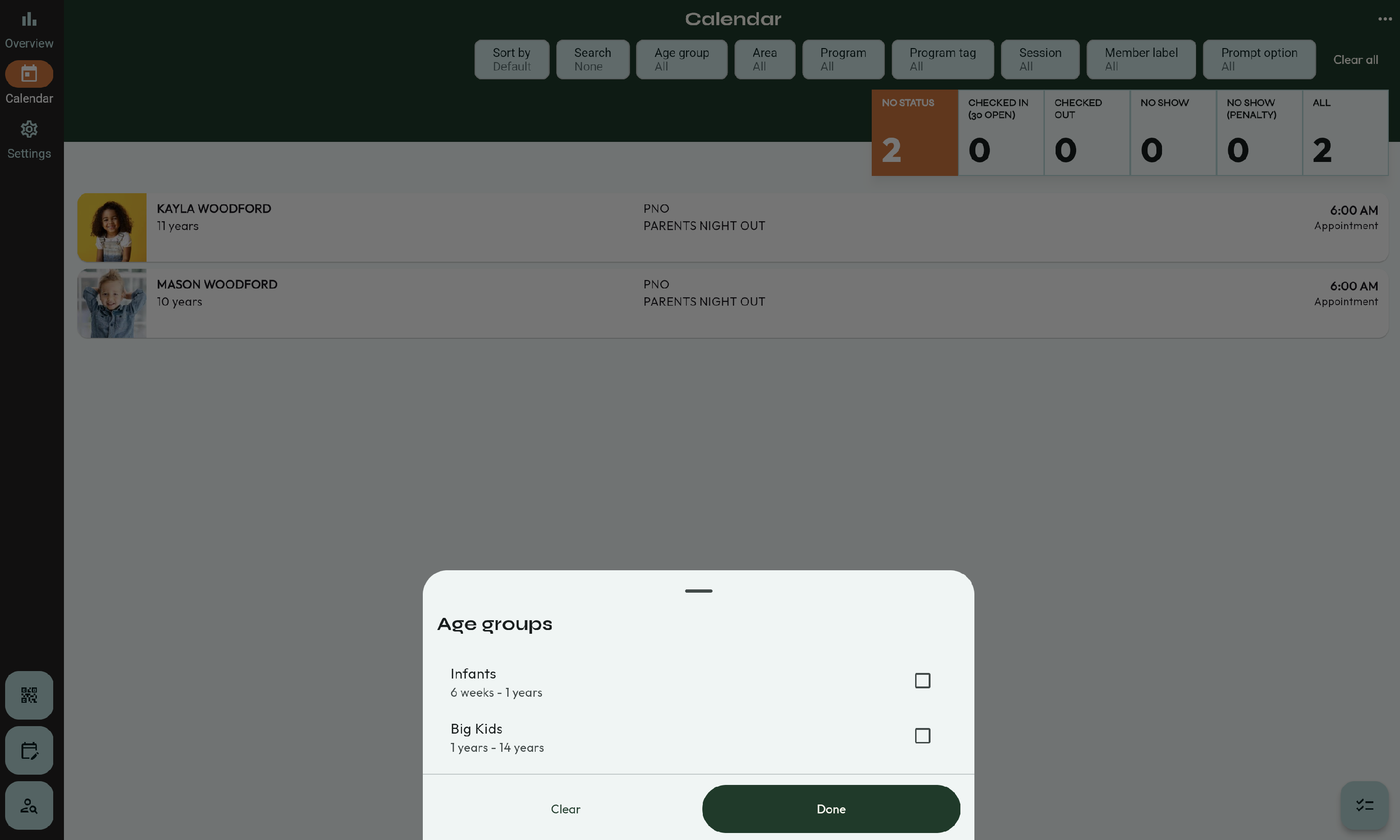 - Next, you can filter by Age Groups. These can also be modified/created in the Alaris Staff Web Portal.