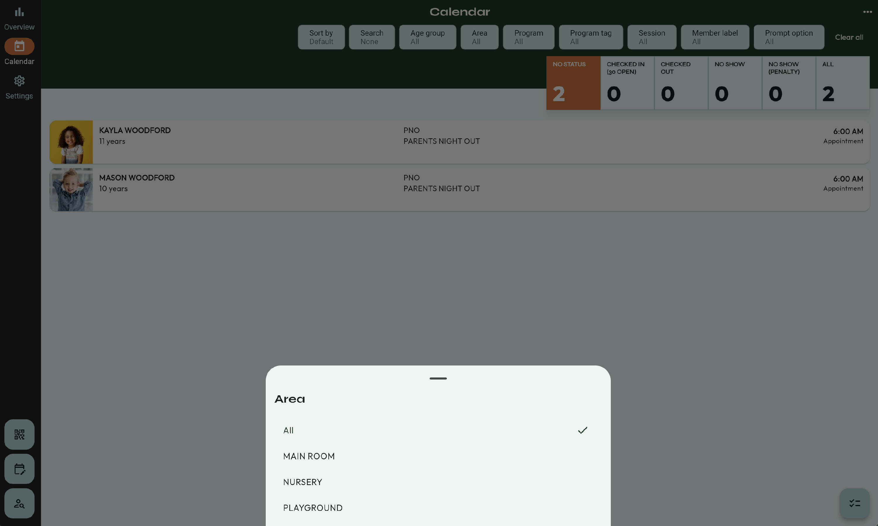 - First, you can filter by Area. These areas can be modified/created in the Alaris Staff Web Portal.