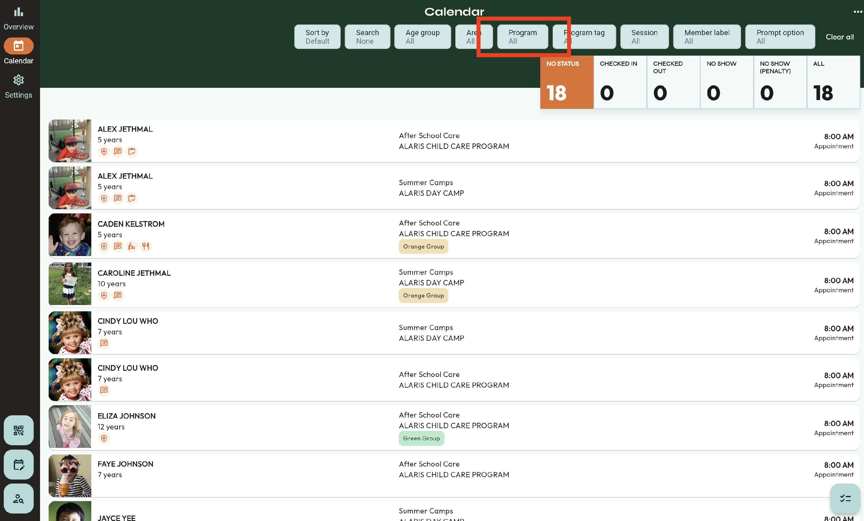 - Select Programs. A drop down menu will appear. Here, you can select which program you want to filter by.