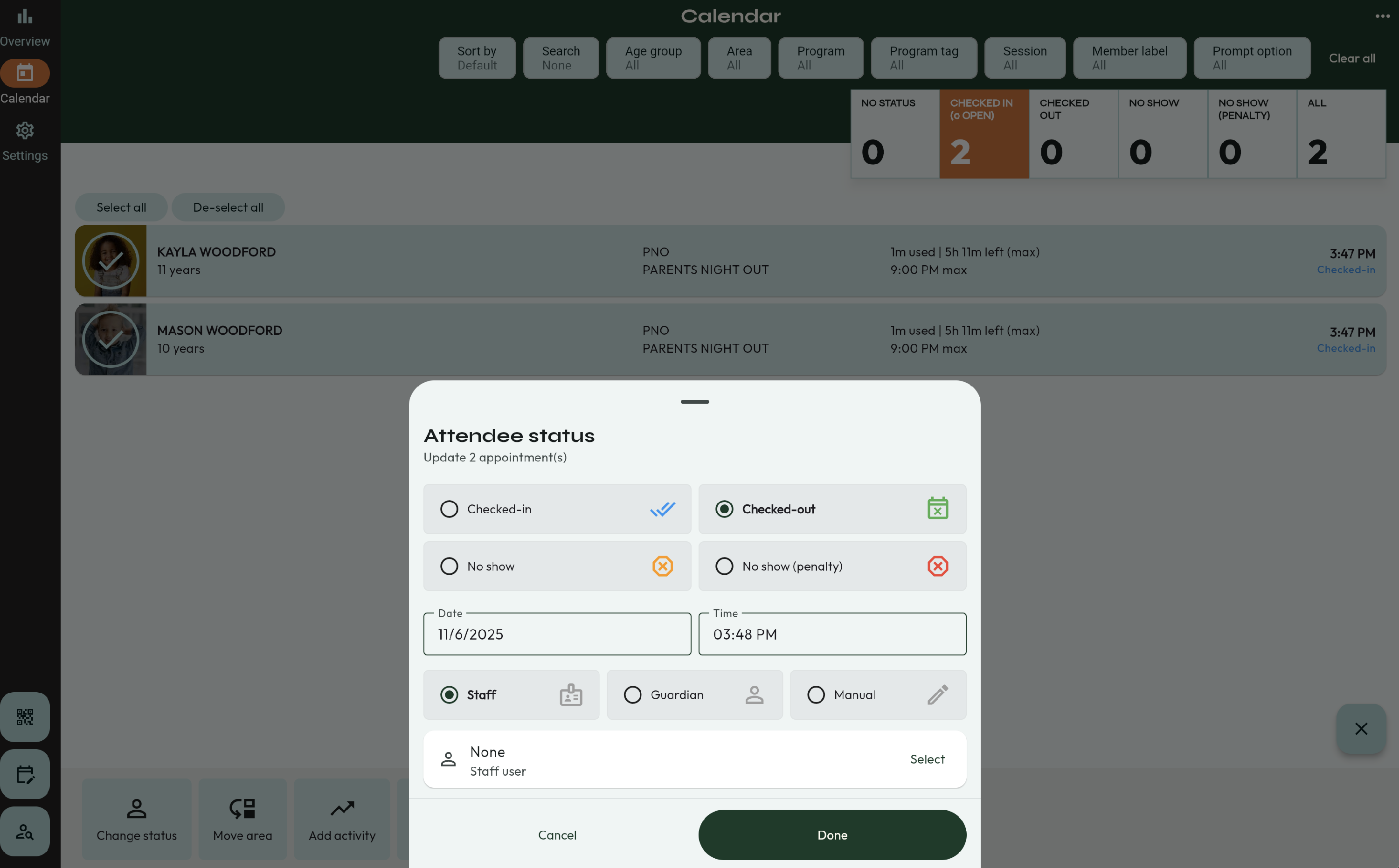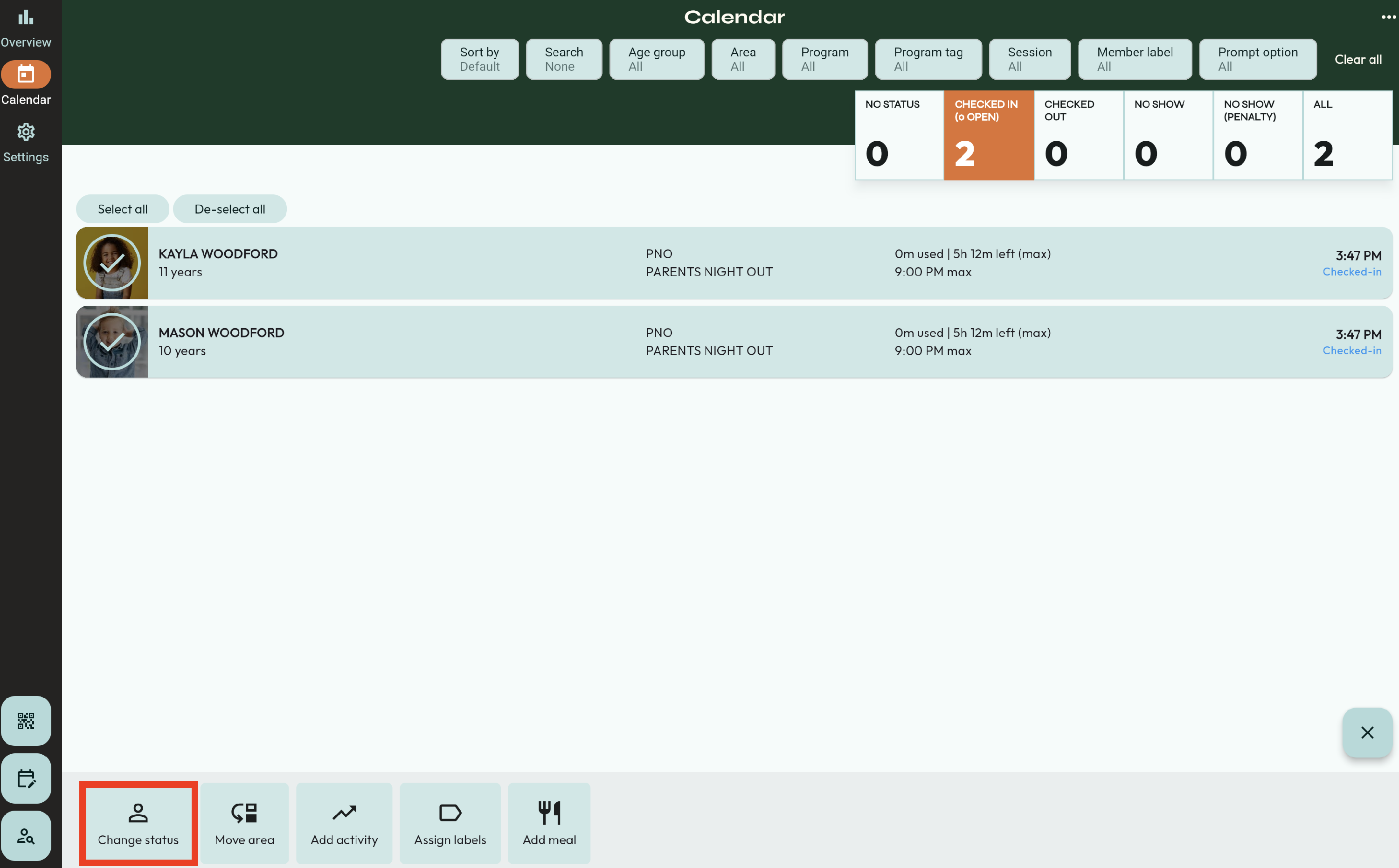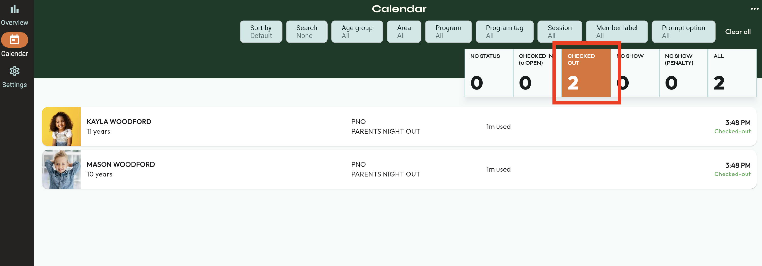 - Select the children you would like to check out of the program. Press and hold to select multiple children.