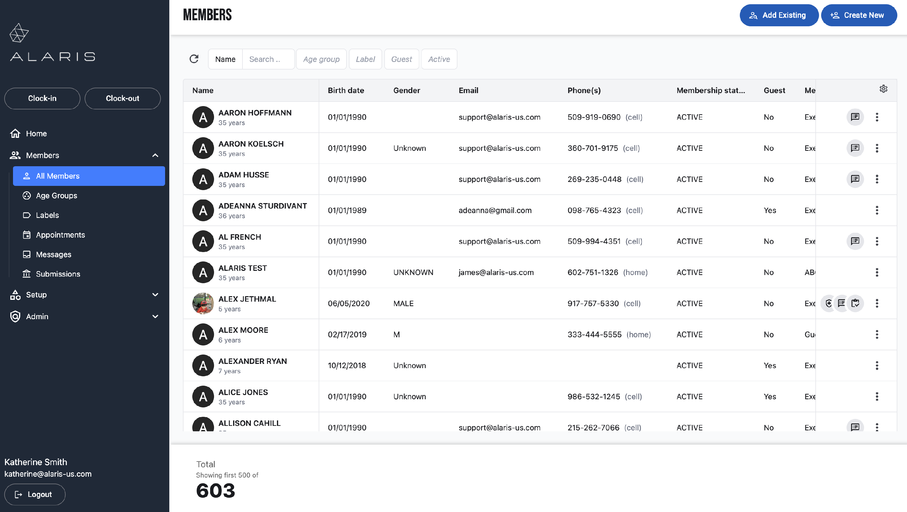 - The user is now registered with Alaris.