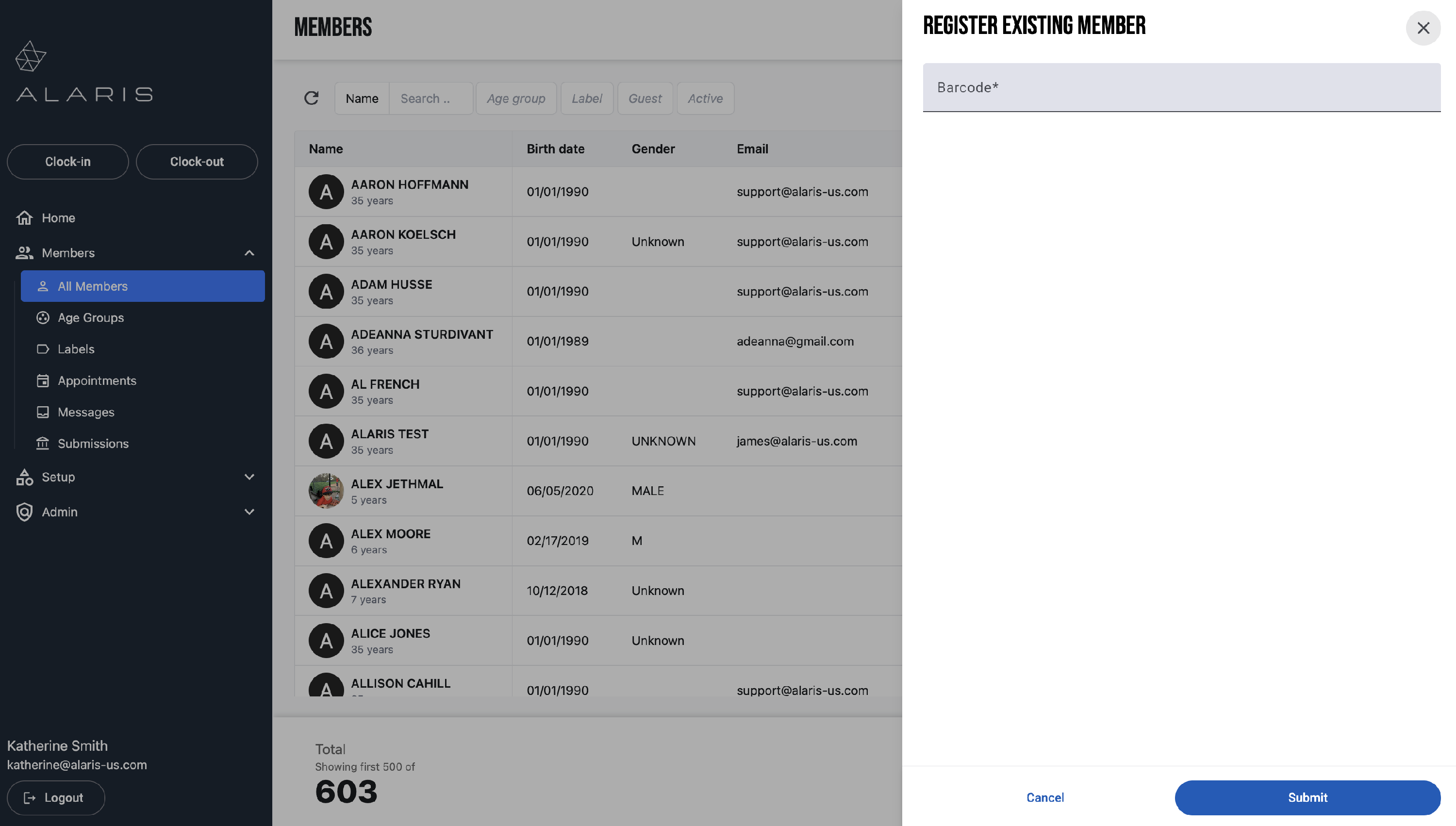 Using the Alaris Admin App, you can register a member into Alaris from your Member Management System using the member's barcode, as shown below.